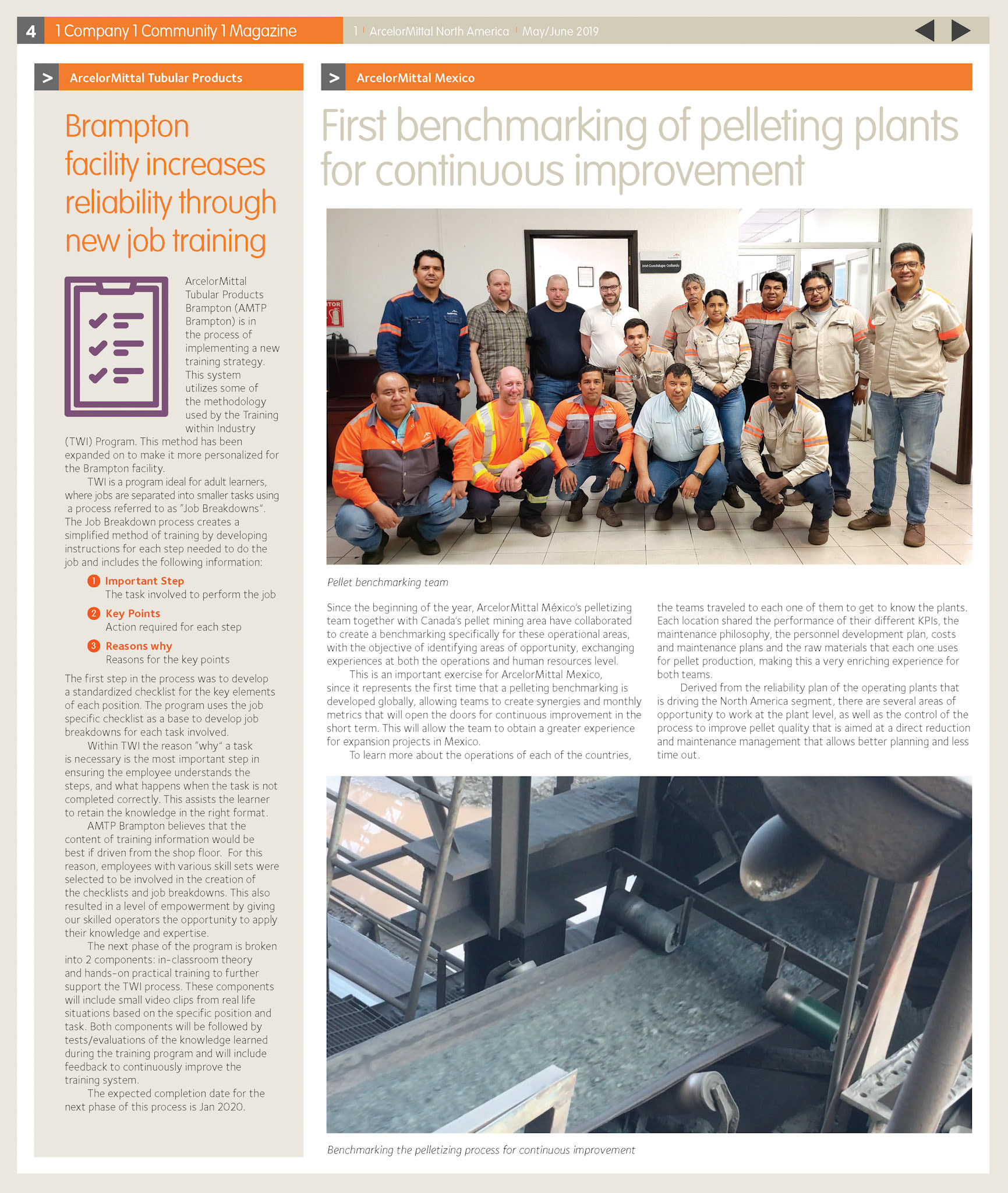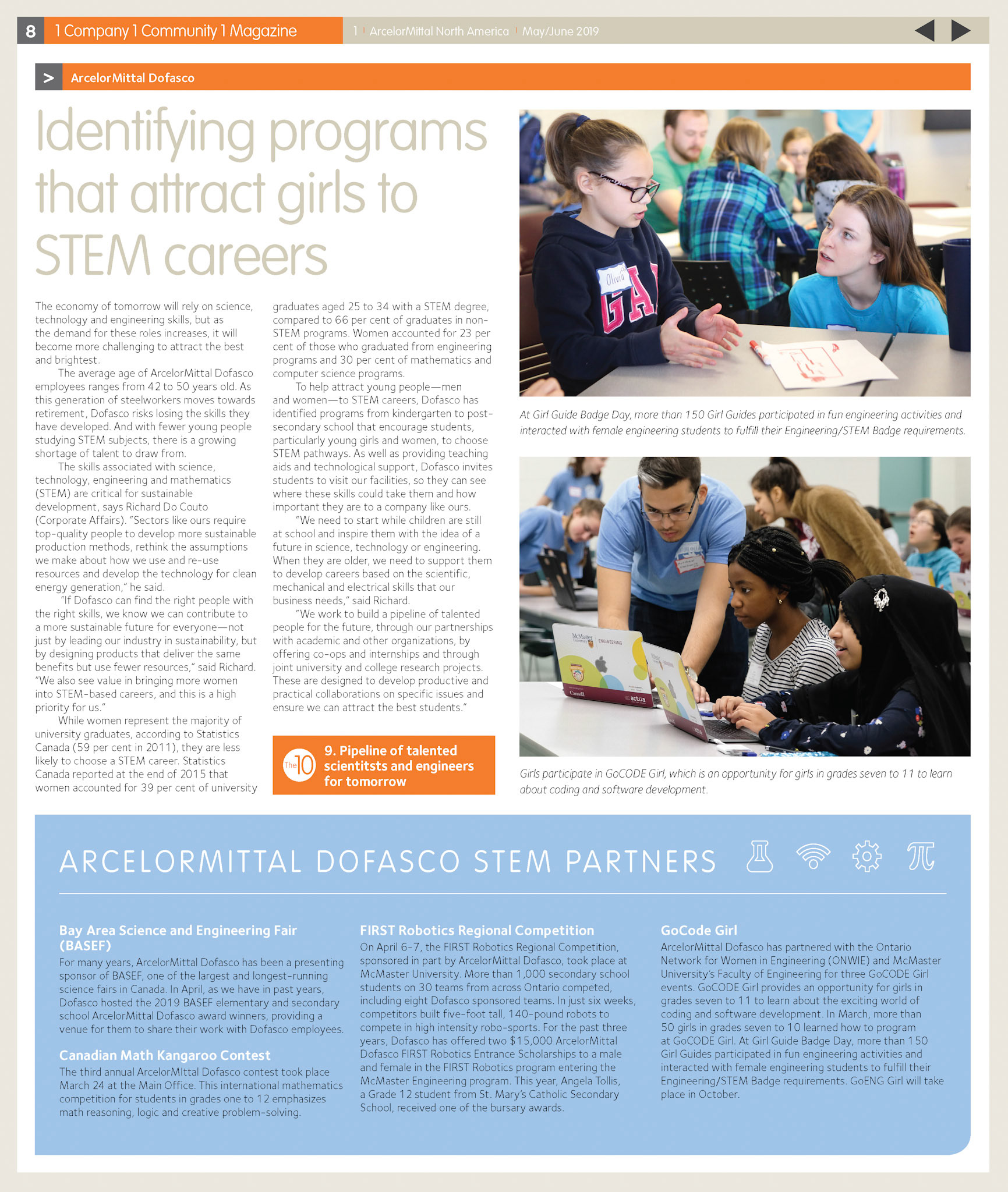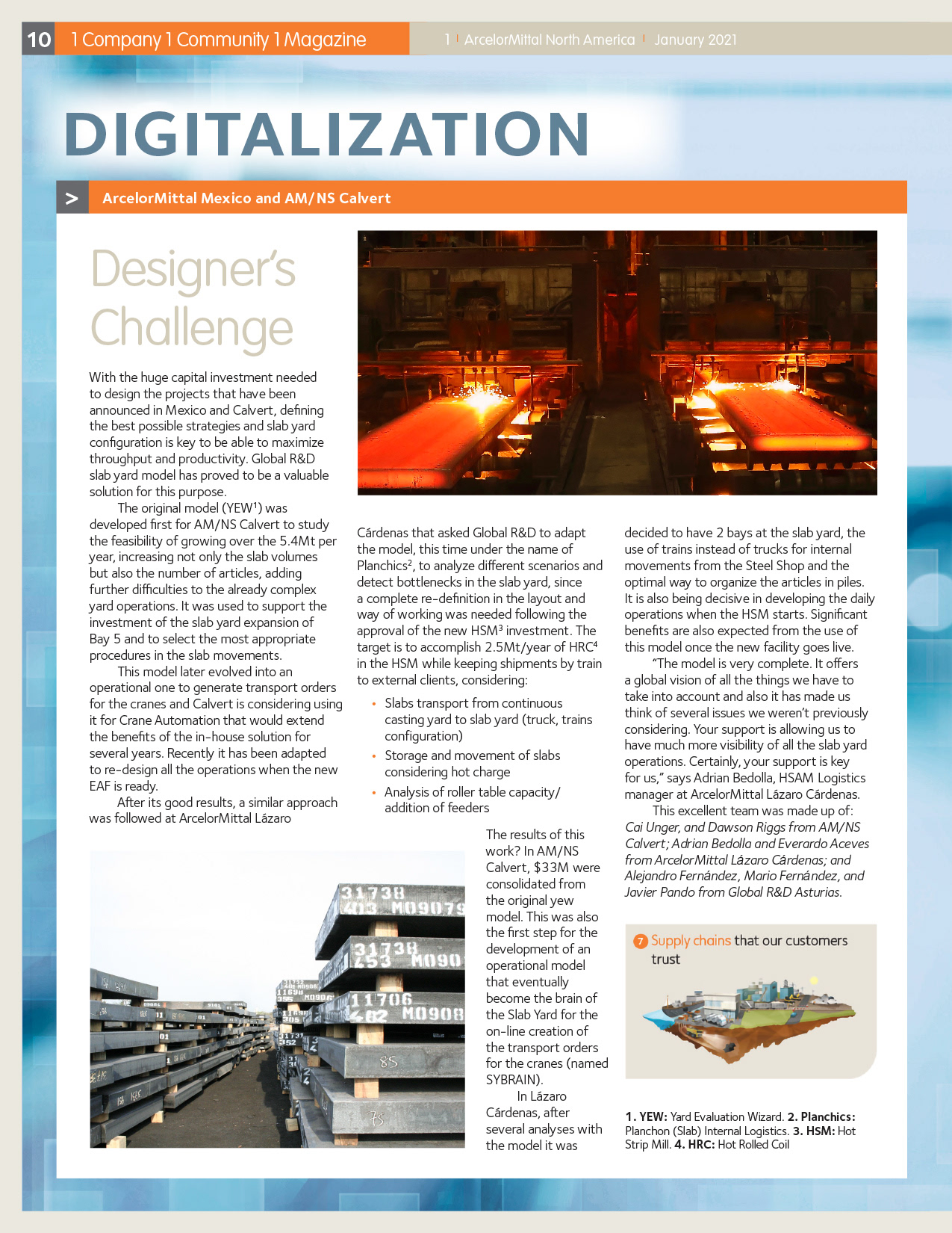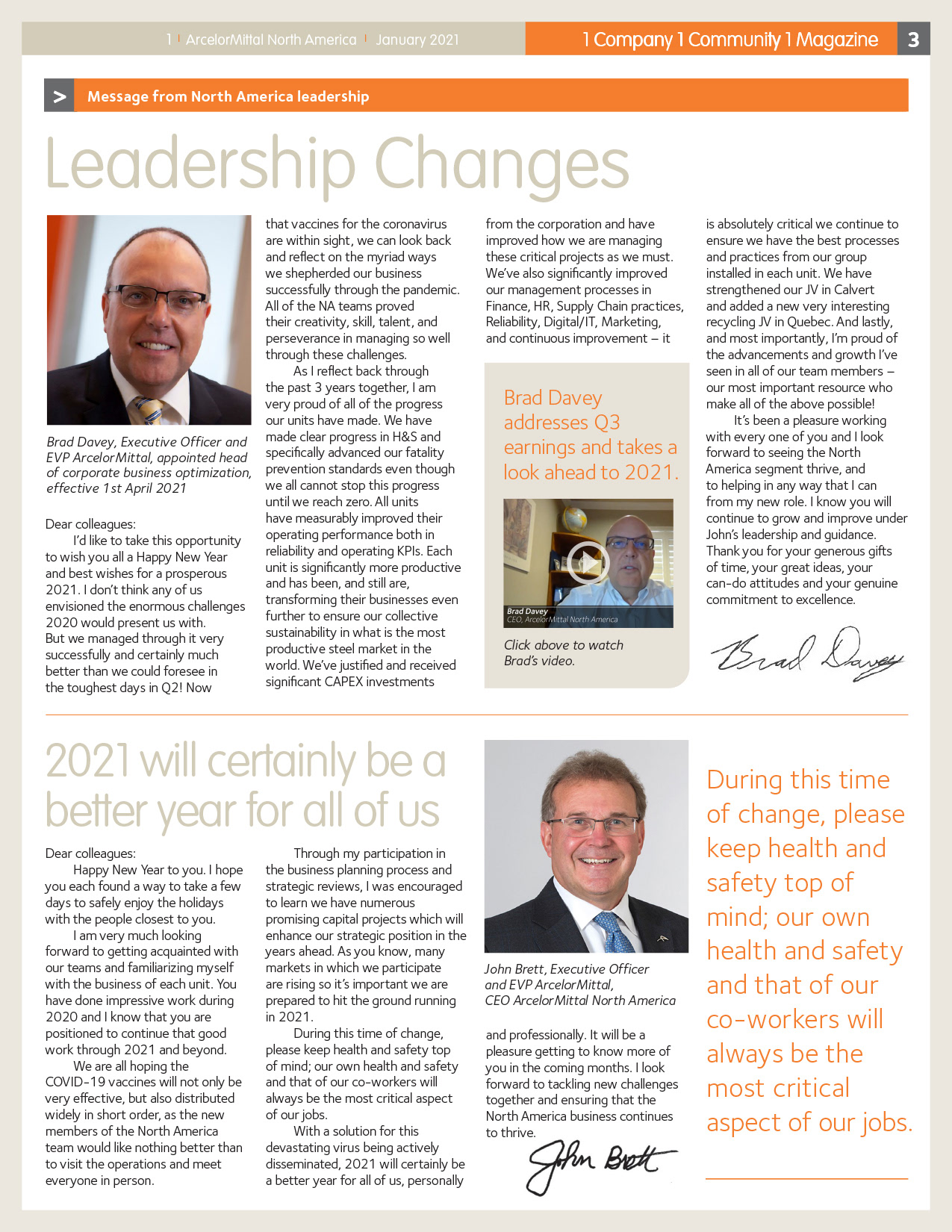 ArcelorMittal quarterly magazine, published in english, french and spanish. I was responsible for design layout and conversion to other languages from 2019-2021. January and May 2021 issues shown below.