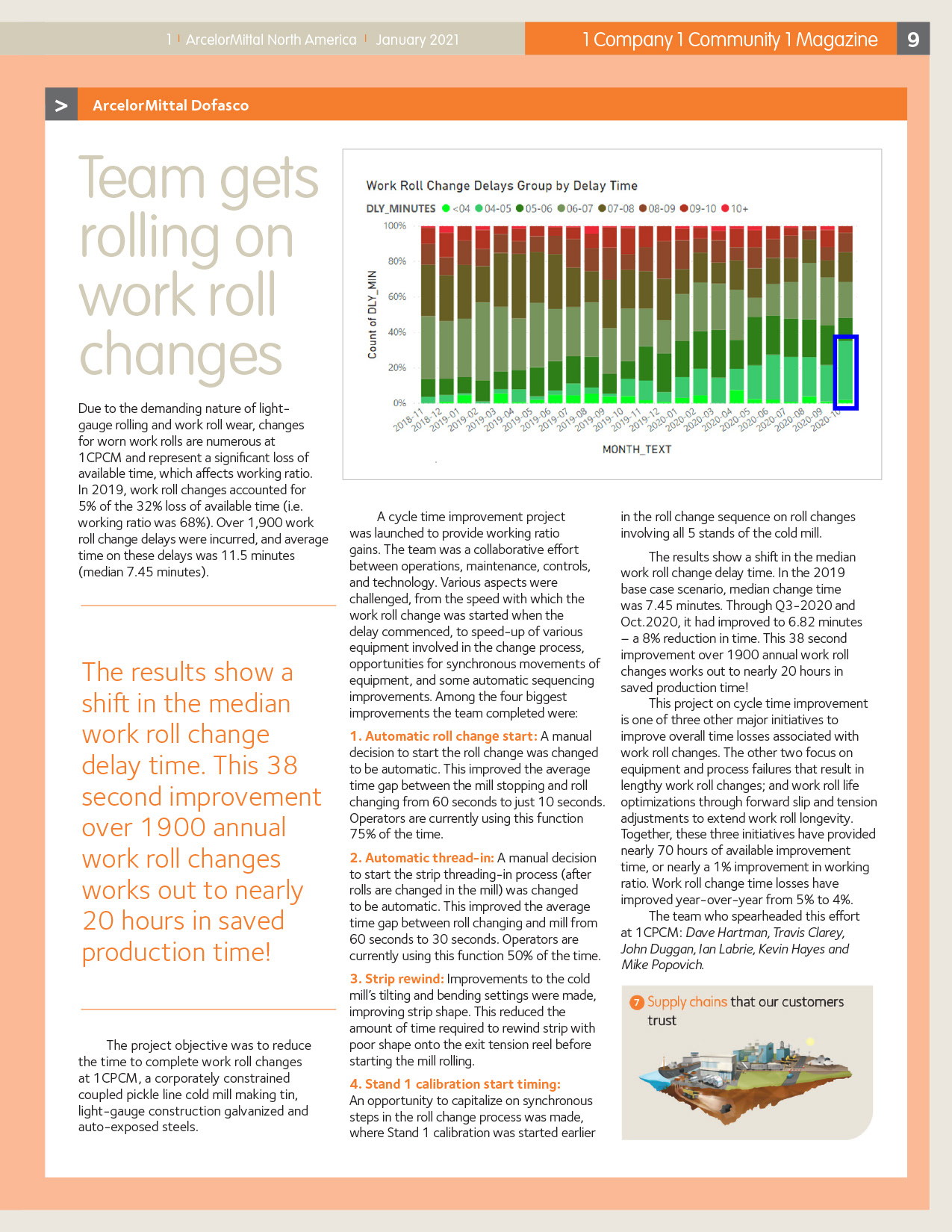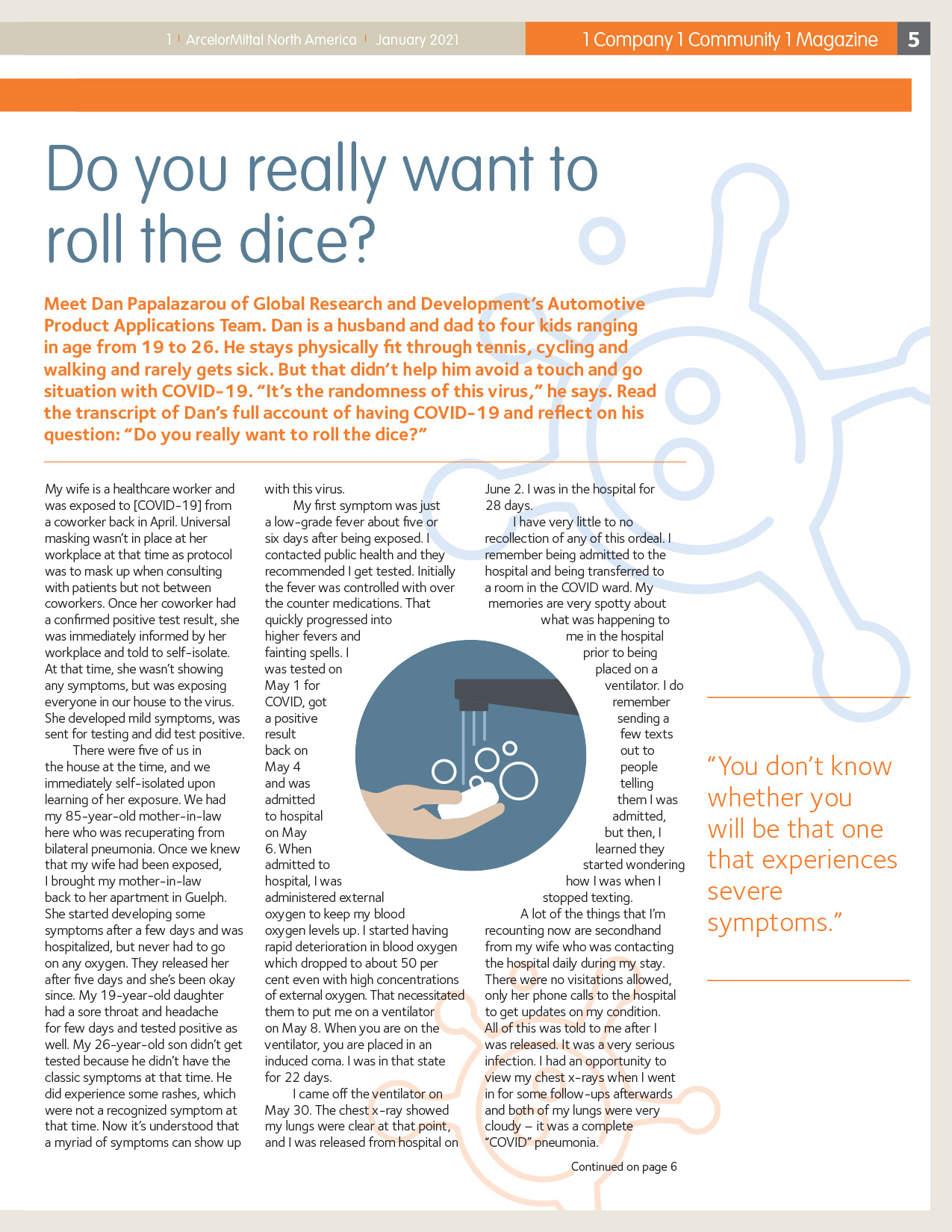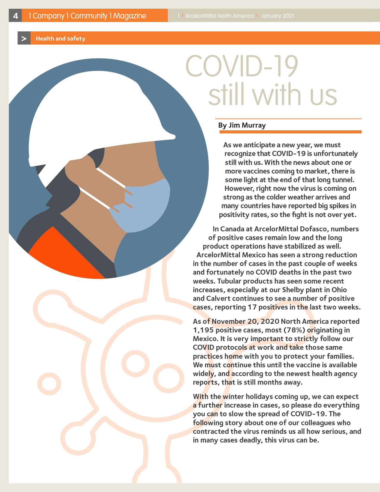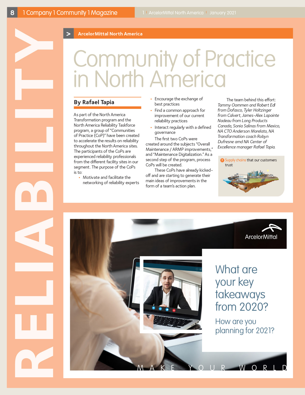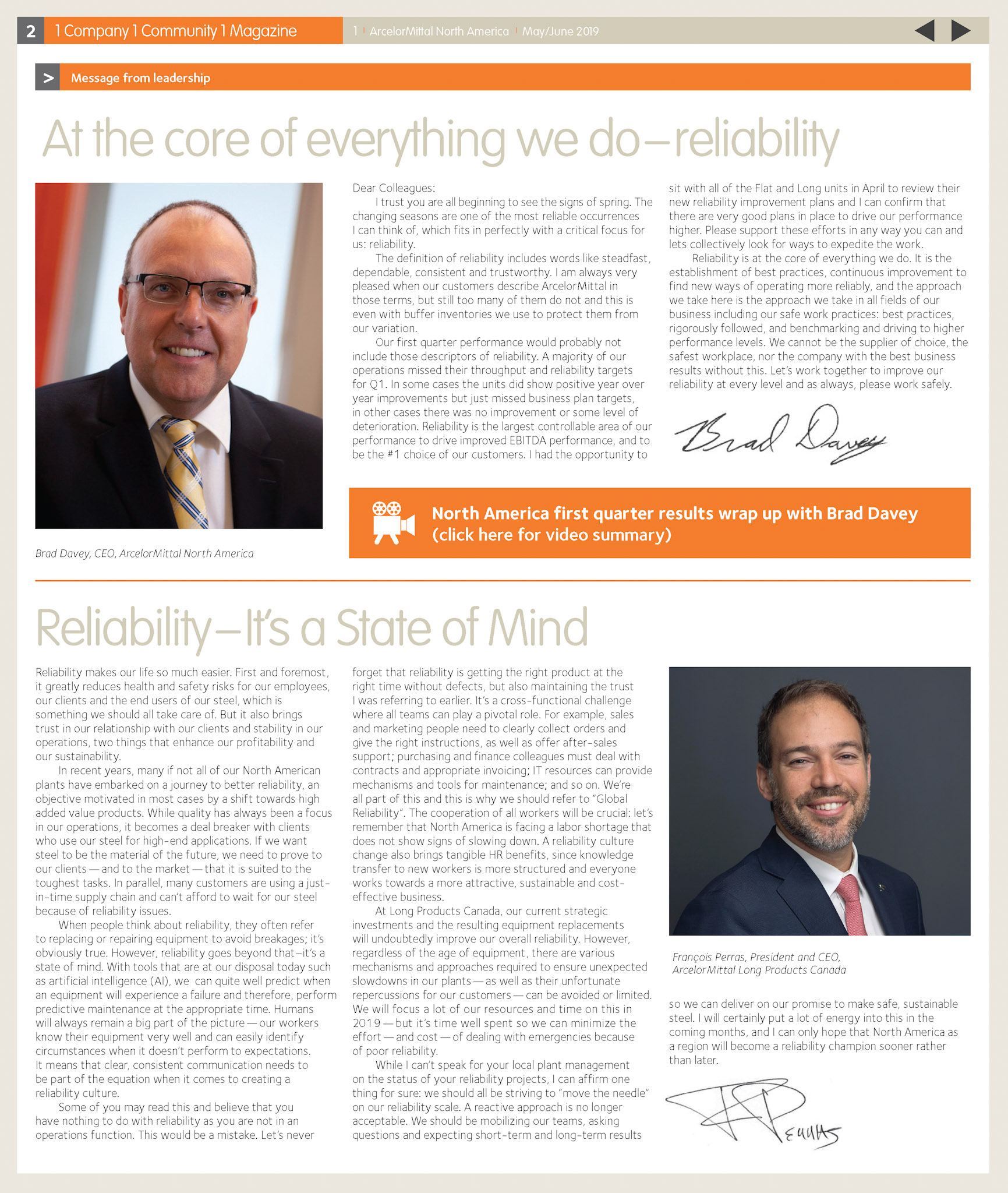 ArcelorMittal quarterly magazine, published in english, french and spanish. I was responsible for design layout and conversion to other languages from 2019-2021. January and May 2021 issues shown below.